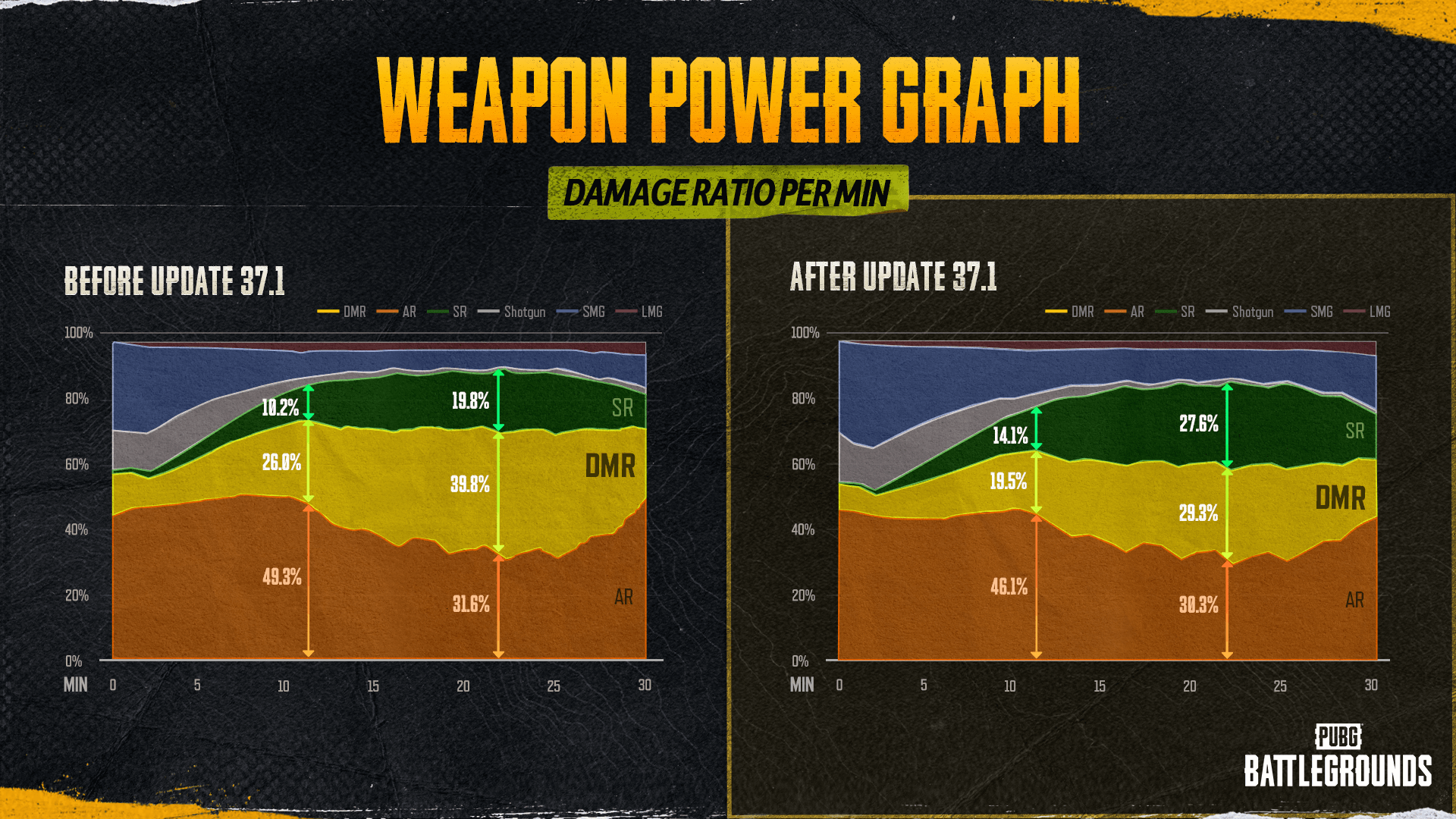 Since the implementation of the DMR Rebalance with Update 37.1, PUBG’s gunplay ecosystem has undergone various changes. As this update brought significant adjustments to DMRs, many of you may be curious about how PUBG’s gunplay has evolved since then.