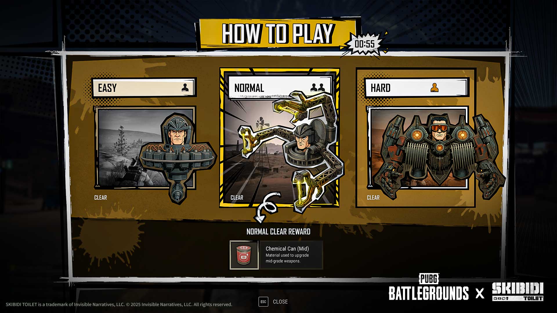 期間限定の新アーケードモードで、Miramarに侵入したSkibidi Toiletの大群を撃退しよう。二度とバトルグラウンズに顔も出せないようにしちゃおう!